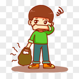 手绘卡通男孩拿着臭袜子免抠元素