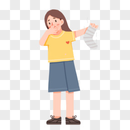 卡通扁平女生拿臭袜子免抠元素
