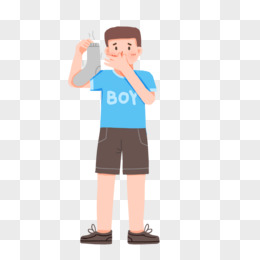 卡通扁平风男生拿臭袜子免抠元素