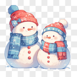 卡通冬季两个戴红色帽子蓝色围脖的雪人免抠元素