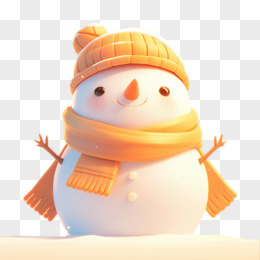 卡通冬季戴黄色帽子和围脖的雪人免抠元素