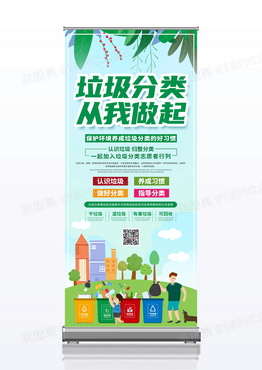 绿色卡通垃圾分类从我做起垃圾分类展架