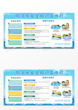 蓝色简约卡通预防溺水安全知识宣传栏防溺水展板