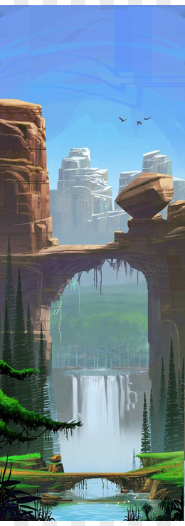 卡通游戏蓝天河流场景