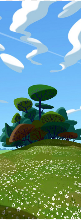 手绘卡通蓝天草地