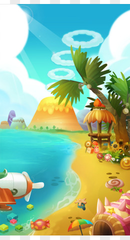 卡通蓝天椰树山峰