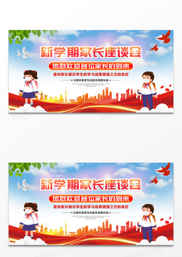 卡通蓝天白云背景新学期家长会展板设计