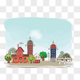 手绘蓝天下的城市