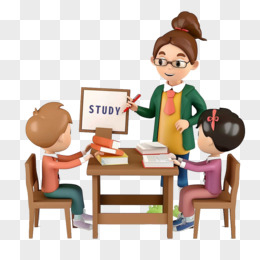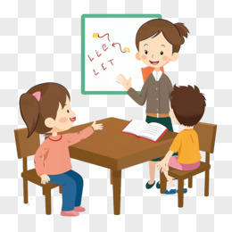 卡通风男老师给学生上课黄色剪影免抠元素