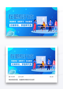 蓝色卡通风在职专升本在职学历提升课程封面设计