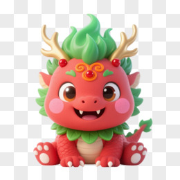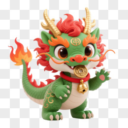 绿红金小龙Q版卡通手绘元素