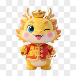 金黄卡通小龙Q版可爱元素