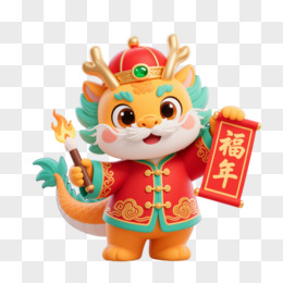 金黄小龙唐装福字卡通手绘元素
