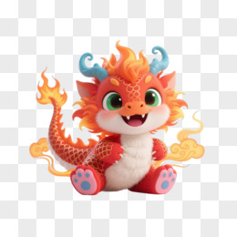 橙红火焰小龙卡通手绘元素