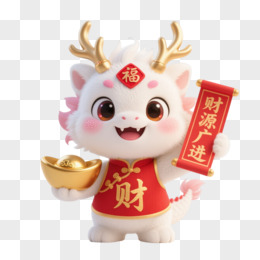 米白龙吉祥物3D卡通漂浮元素