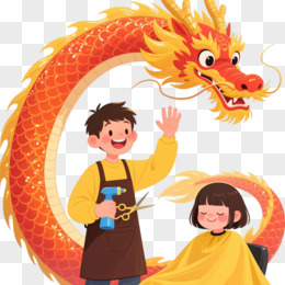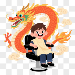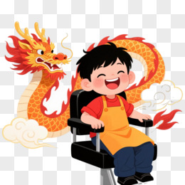 橙红龙绕男孩卡通手绘元素
