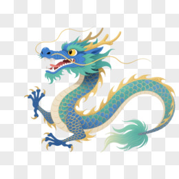 蓝绿金鳞中国龙卡通手绘元素