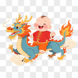 红衣婴儿骑龙卡通手绘元素