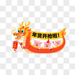 橙红中国龙与小猪卡通手绘元素