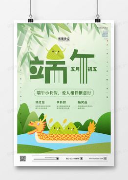 卡通创意清新中国风端午节龙舟元素