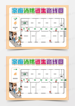 卡通手绘火灾家庭消防逃生路线图可爱插画设计手抄报