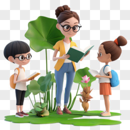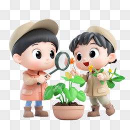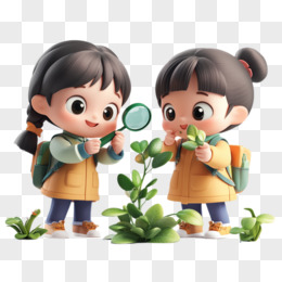 3D卡通两个女学生拿着放大镜观察自然免抠元素