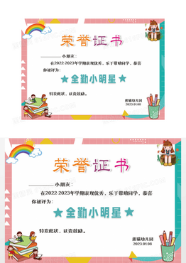 2023年卡通清新马卡龙色幼儿园荣誉奖状设计