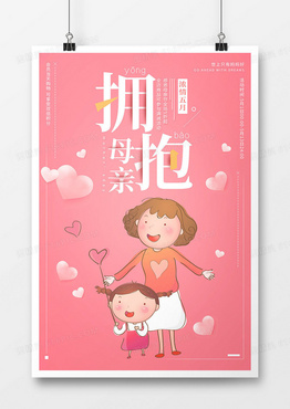 母亲节妈妈孩子宝宝拥抱手绘卡通母爱文艺卡片水墨水彩礼物祝福