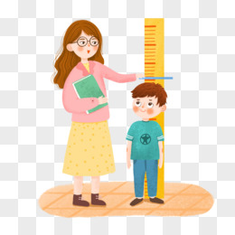 手绘卡通妈妈给孩子量身高场景免抠元素