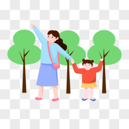 手绘卡通妈妈孩子游玩出游郊游元素