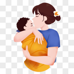 手绘卡通母亲抱婴儿免抠素材