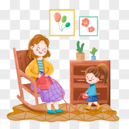 手绘卡通妈妈织毛衣场景元素