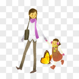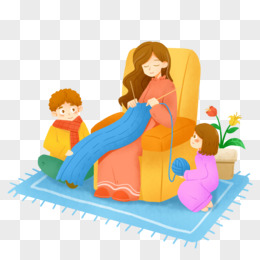 卡通手绘免抠妈妈和孩子温馨画面元素