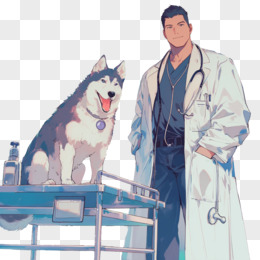 卡通风宠物兽医给柴犬看牙齿免抠元素