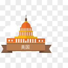 手绘矢量扁平白宫建筑素材