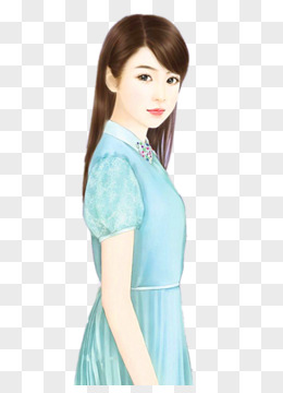 手绘卡通民国风旗袍女子素材