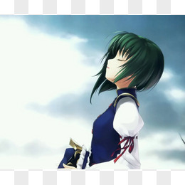 手绘卡通绿头发漫画美女
