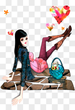 手绘卡通时尚珠光美女