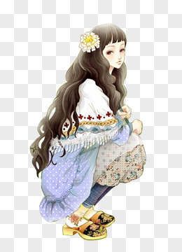 卡通彩绘黑头发美女
