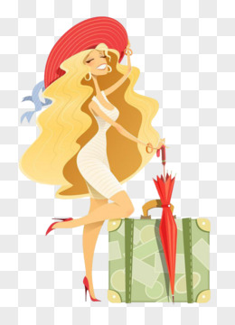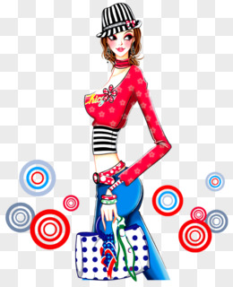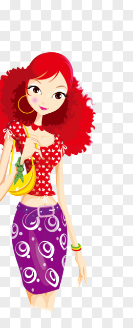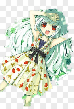 卡通风格中长发穿着粉绿色条纹吊带长裙的美女在粉色的花丛中闻花香免抠元素