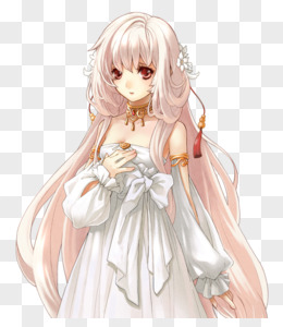 卡通风格系着黄色发带穿着白色露肩上衣的美女拿着一束黄色和白色花朵免抠元素