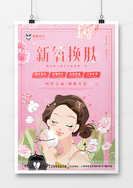粉色创意卡通新氧焕肤美容海报