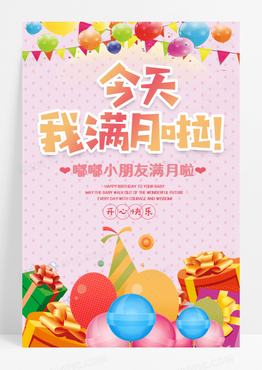 宝宝满月粉色卡通梦幻生日宴今天我满月啦满月宴海报