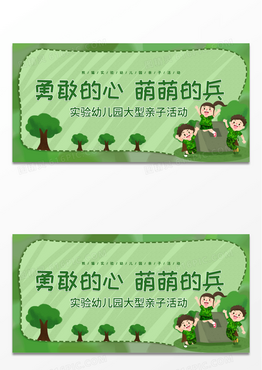 绿色卡通军训迷勇敢的心萌萌的兵幼儿园亲子活动宣传展板
