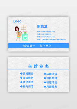 蓝色卡通熊猫名片家政名片名片家政家政名片