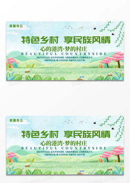 绿色清新卡通特色乡村享民族风情农业宣传展板