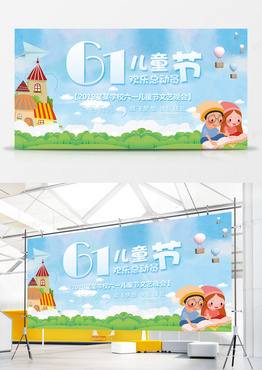 61儿童节文艺汇演晚会背景清新卡通幕布展板