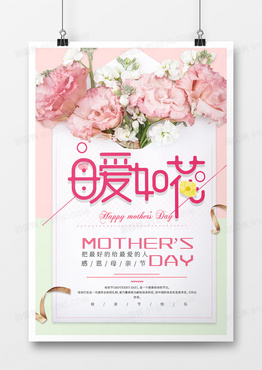 小清新粉色创意简约扁平卡通母女母亲节花海报