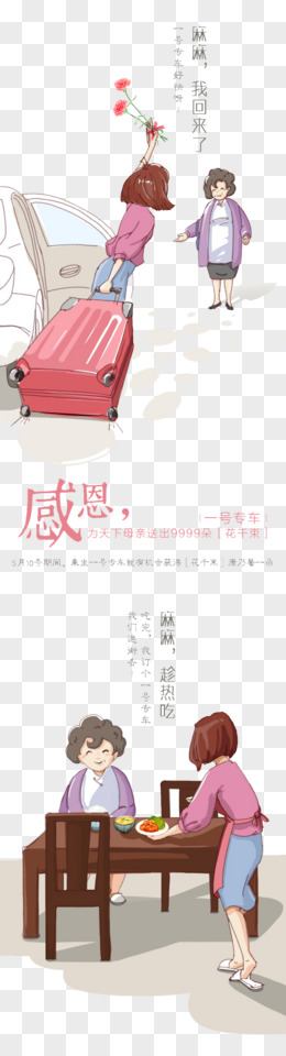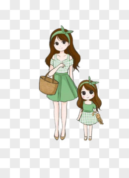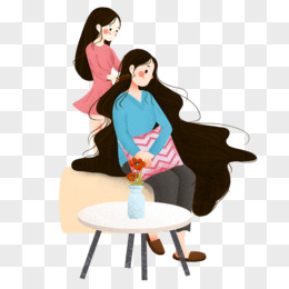 手绘卡通母亲节温馨可爱简约母女互动双人小清新