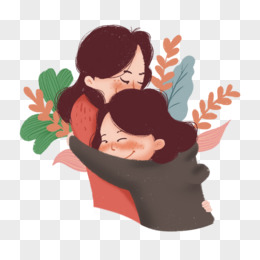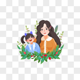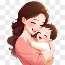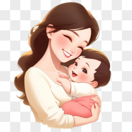 母亲节妈妈温柔的抱着孩子卡通免抠元素